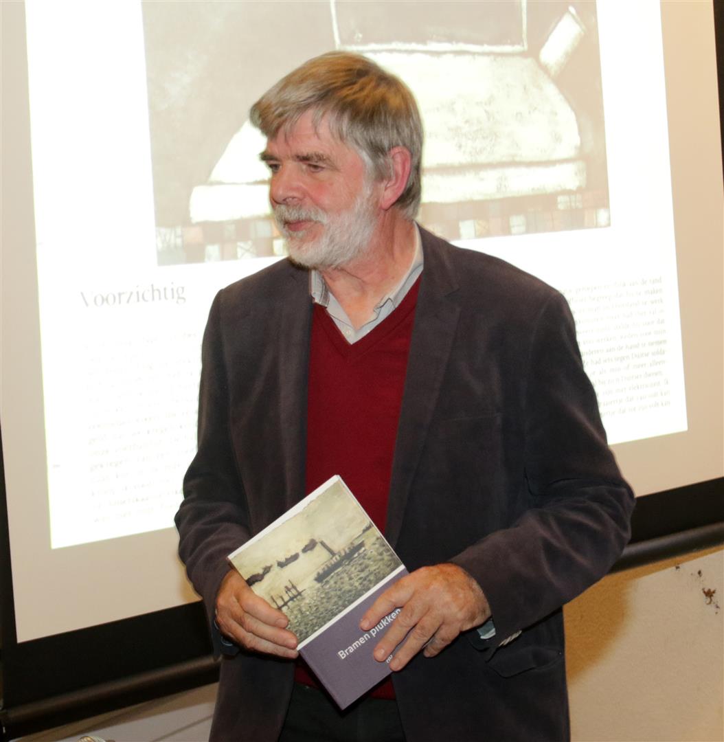 Wim Hofman met het eerste exemplaar van BRAMEN PLUKKEN