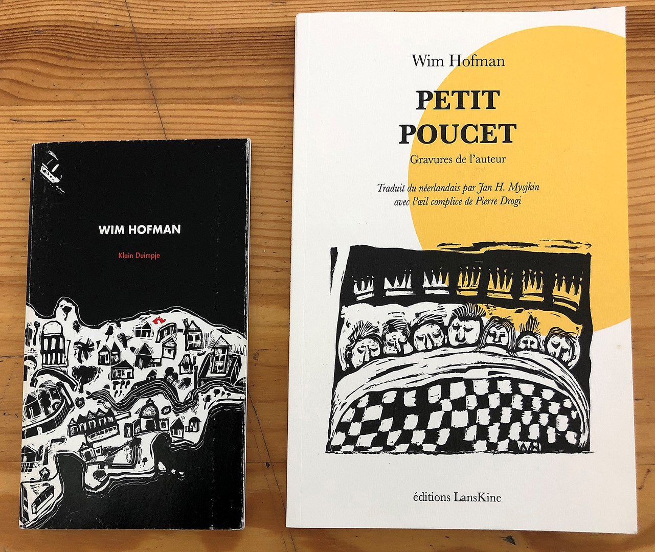 De veelvuldig gelauwerde auteur en beeldend kunstenaar/illustrator Wim Hofman (1941) heeft zowel in zijn teksten als in zijn beeldend werk een volstrekt eigen idioom. Zijn verhalen zijn vaak nogal somber van toon: veel dingen mislukken en volwassenen zijn vaak niet aardig voor kinderen. Maar zijn bijzondere humor, zowel in woord als beeld verzacht deze somberheid. Zijn woordgebruik en beeldend werk zijn speels en maakt de lezer of beschouwer aan het glimlachen. Op zijn geheel eigen wijze relativeert Hofman de ernst van het onderwerp. Hij illustreert zijn boeken daarom zelf.