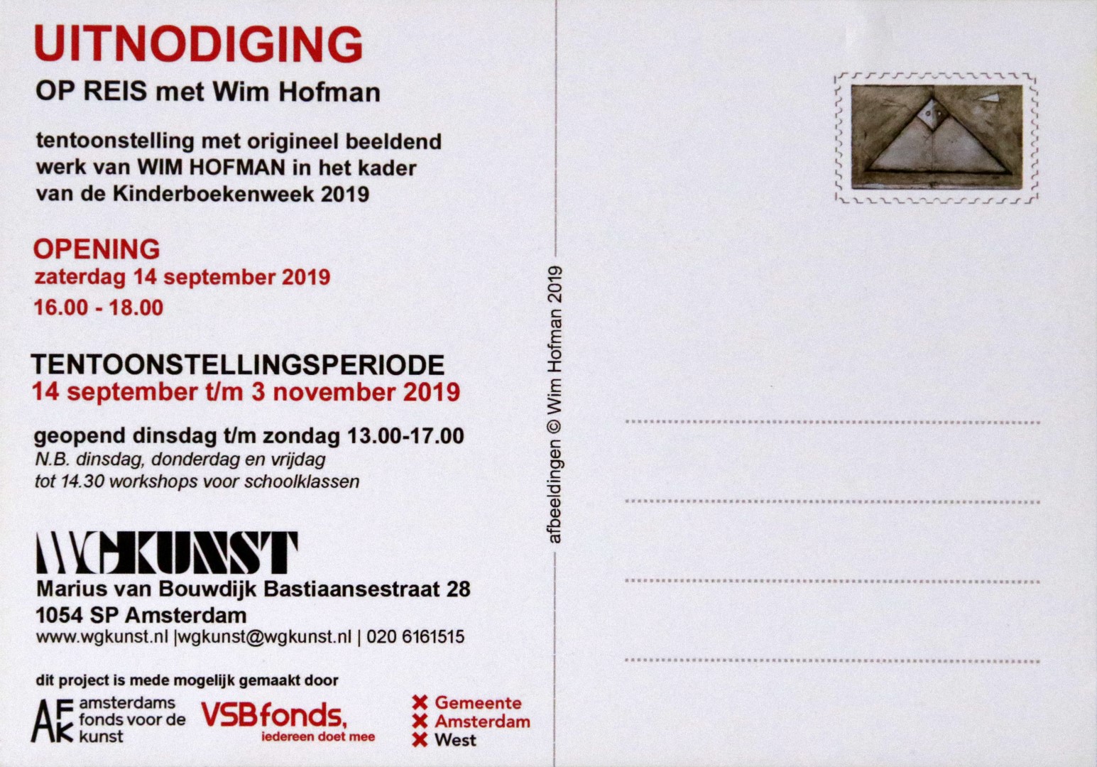 Vanzelfsprekend bent u eveneens van harte uitgenodigd om Wim Hofmans werk in het special hiervoor ingerichte deel van de galerie te komen bekijken en ervaren.