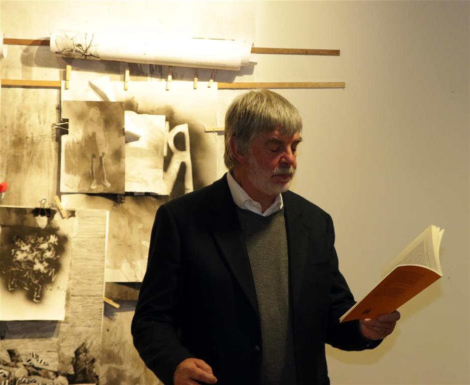 Wim Hofman leest tijdens zijn dankwoord voor uit eigen werk