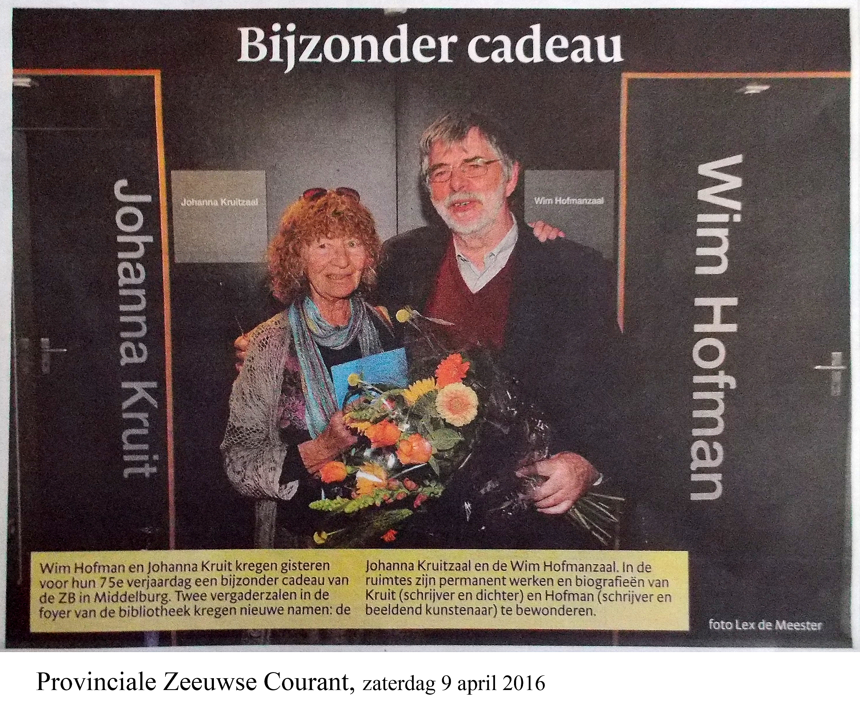 8 APRIL 2016 - EEN BIJZONDERE EER VOOR WIM HOFMAN & JOHANNA KRUIT -